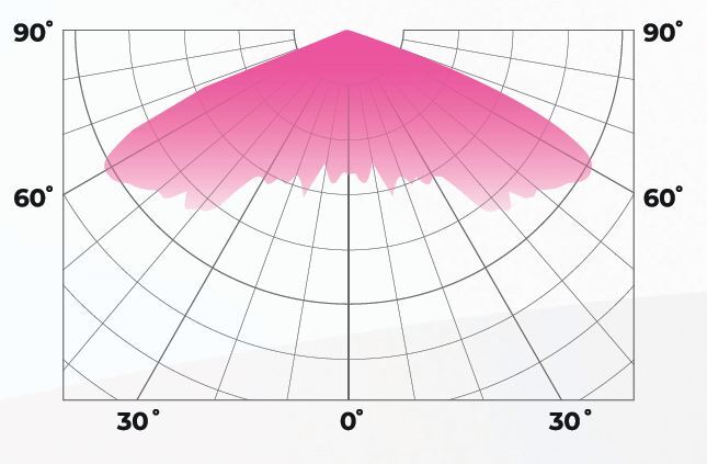 DLI Toplighting fixtures are designed to deliver high levels of photosynthetic photon flux (PPF) values with optimal angled vertical light uniformity. The unique design of the lens creates a high uniform light distribution over the canopy.